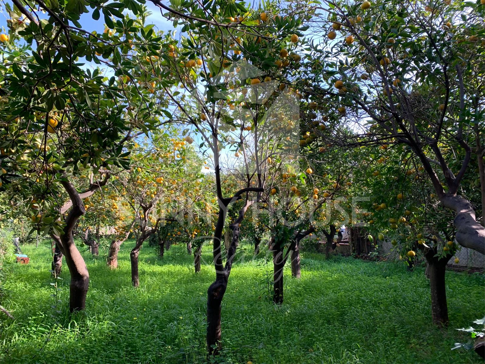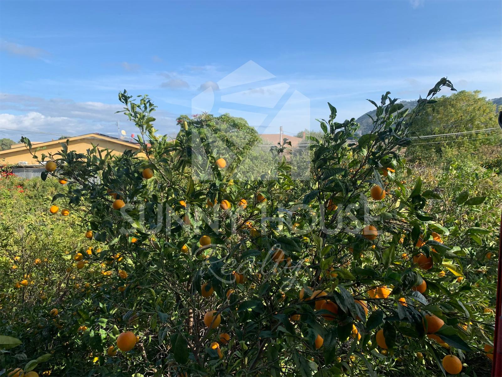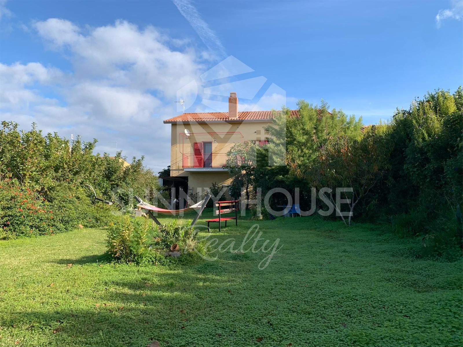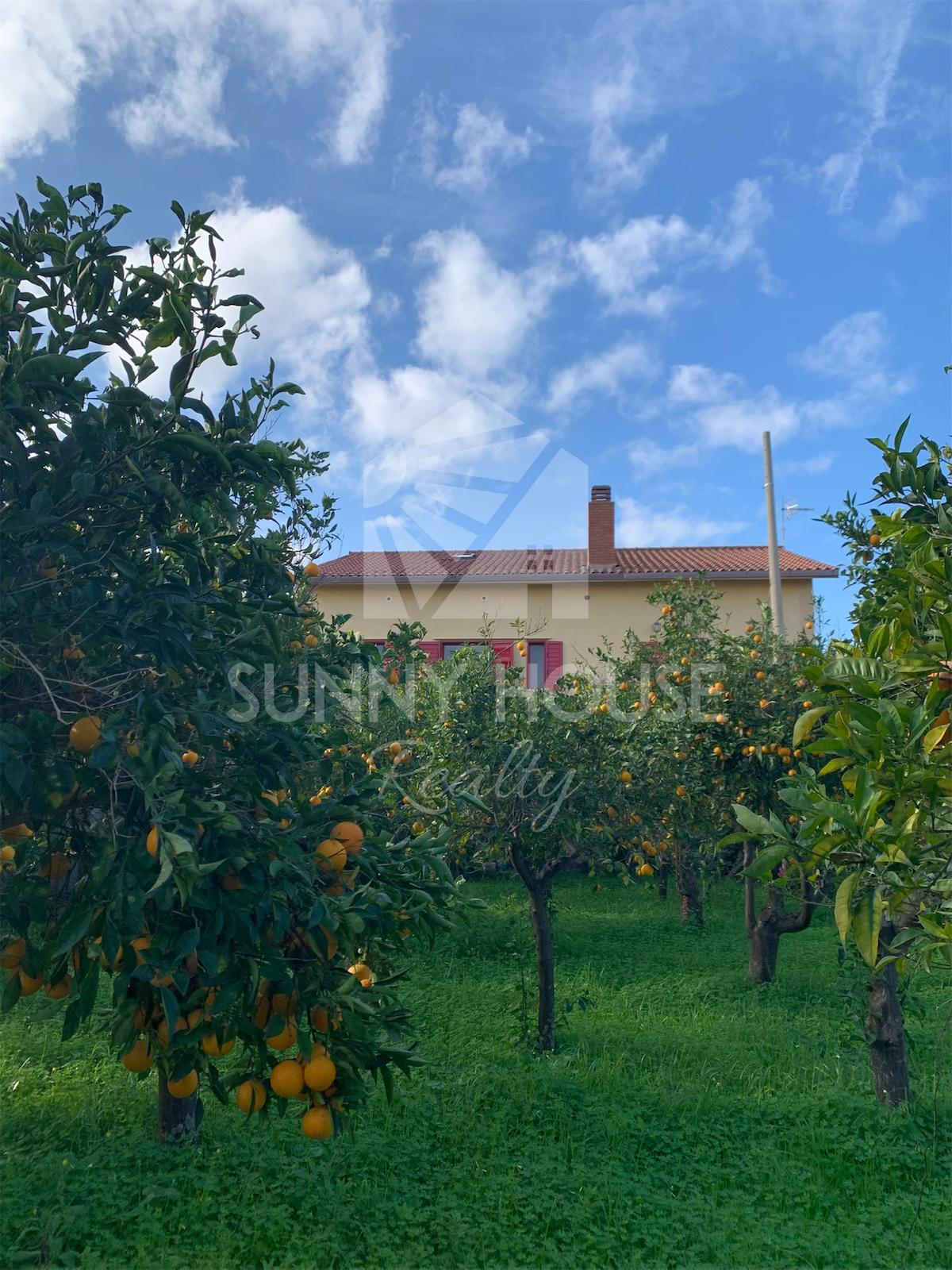 La villa è incorniciata da uno spazio esterno molto curato: nella parte frontale si trova un giardino ricco di alberi di arancio, che profumano l’area e creano un’atmosfera mediterranea. Sul retro della casa si estende un ampio prato verde, ideale per momenti di relax all’aria aperta, per l’installazione di una piscina o per realizzare aree ricreative.