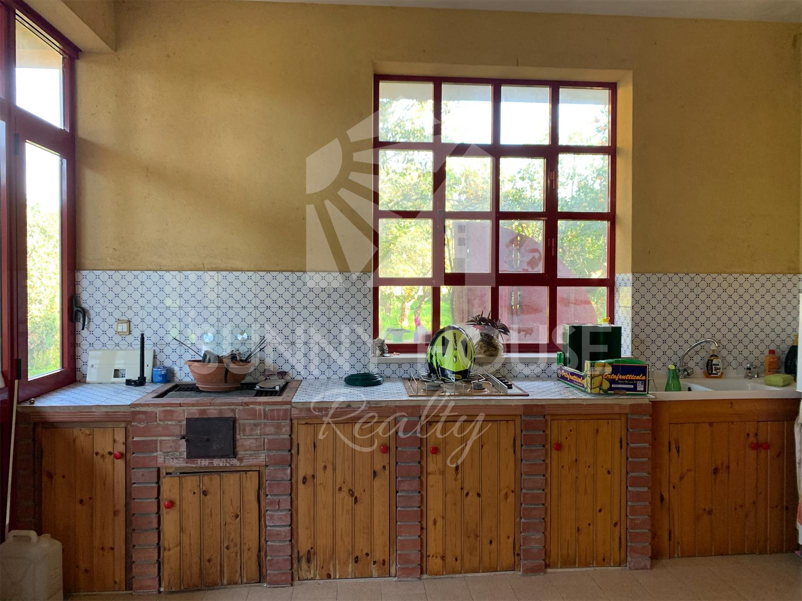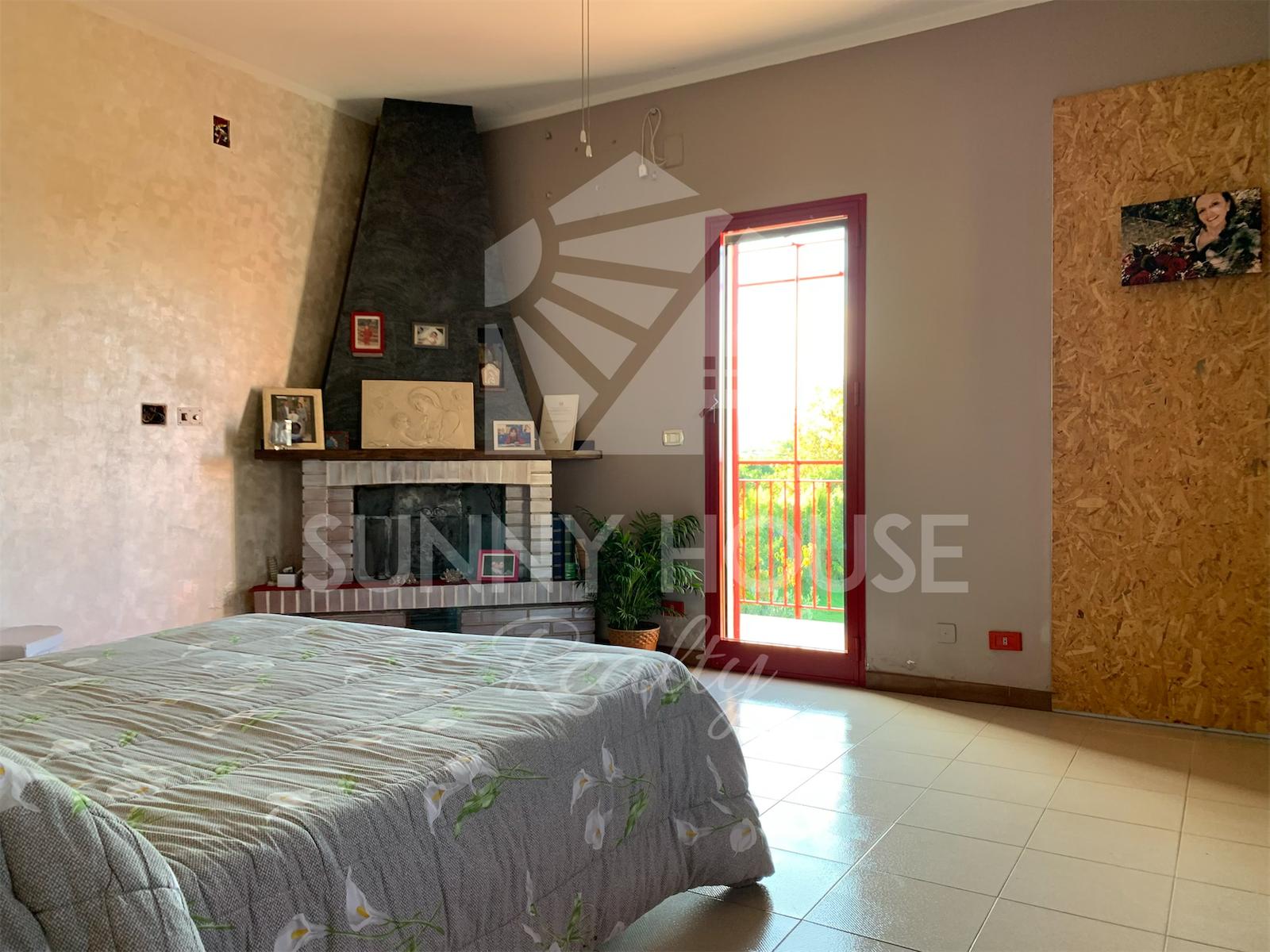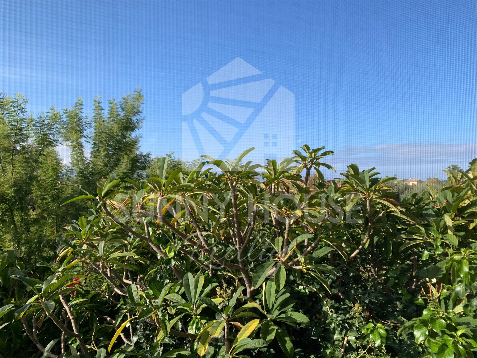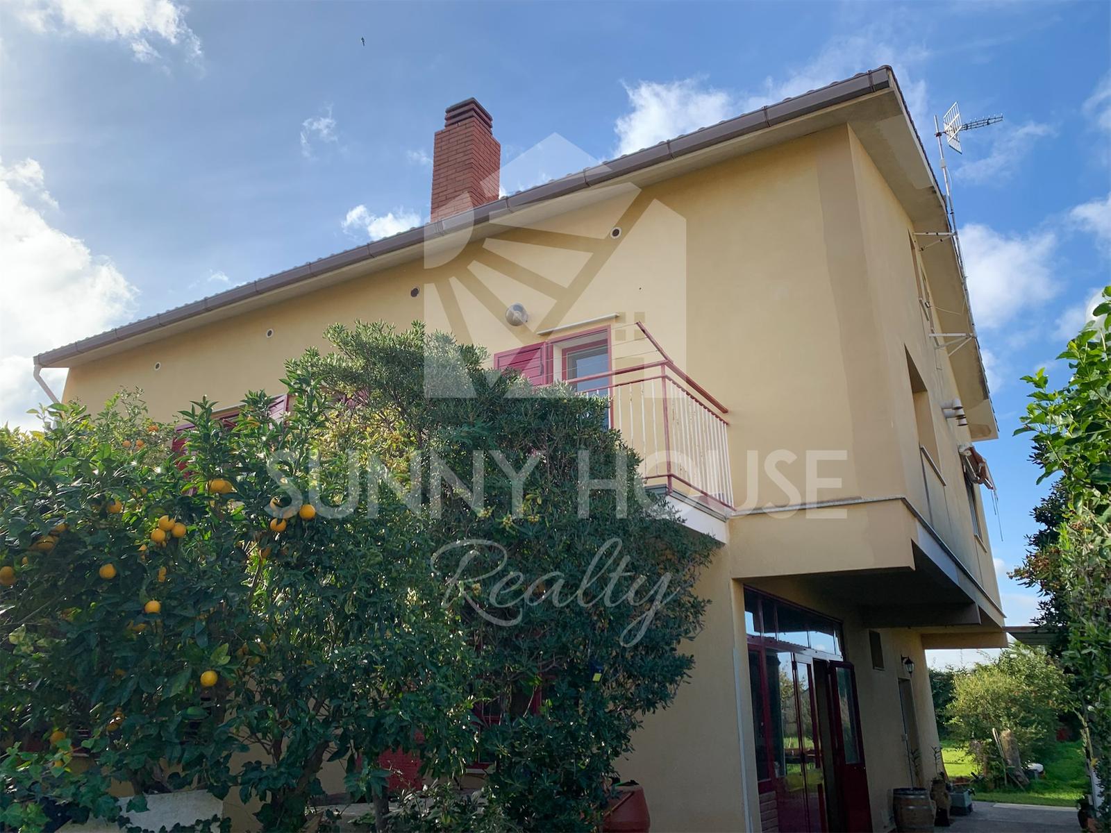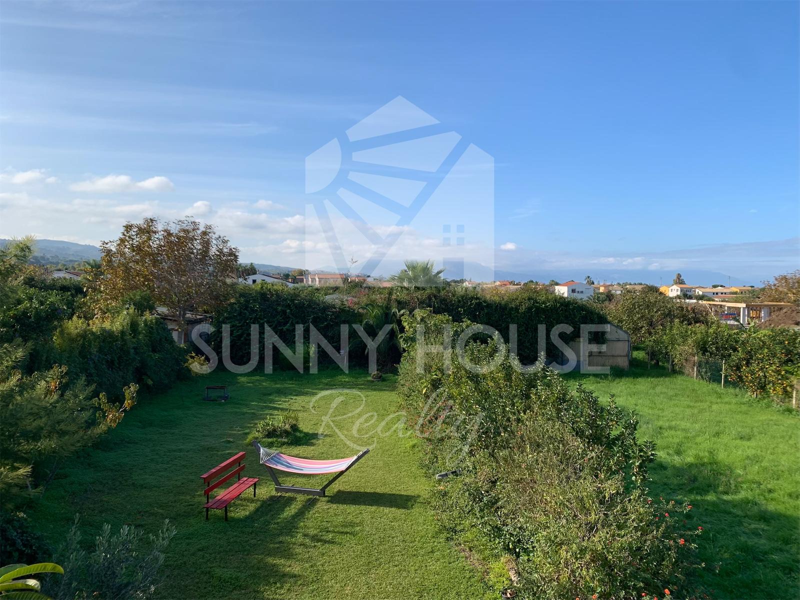 La villa è incorniciata da uno spazio esterno molto curato: nella parte frontale si trova un giardino ricco di alberi di arancio, che profumano l’area e creano un’atmosfera mediterranea. Sul retro della casa si estende un ampio prato verde, ideale per momenti di relax all’aria aperta, per l’installazione di una piscina o per realizzare aree ricreative.
