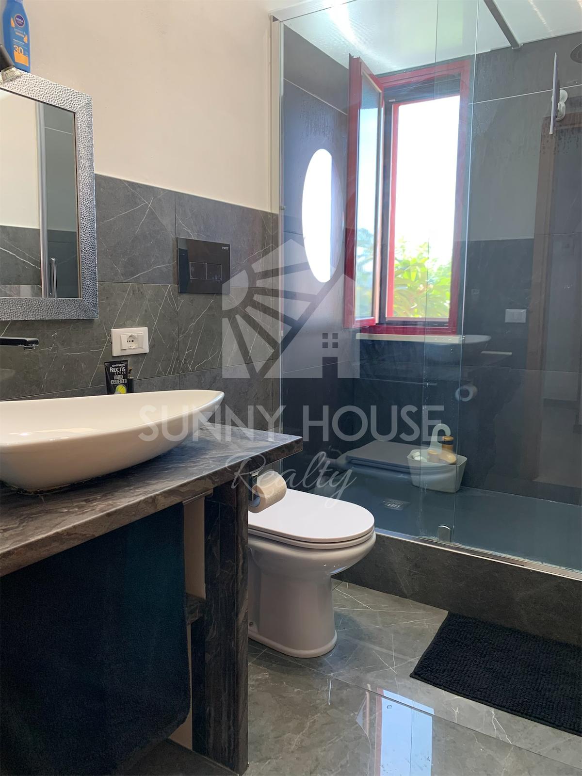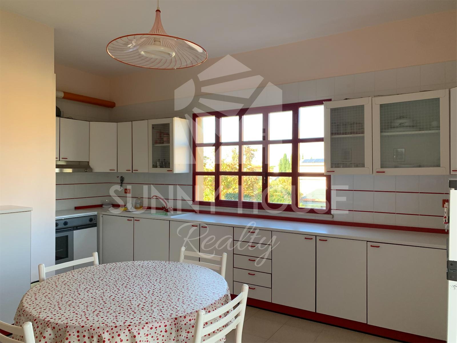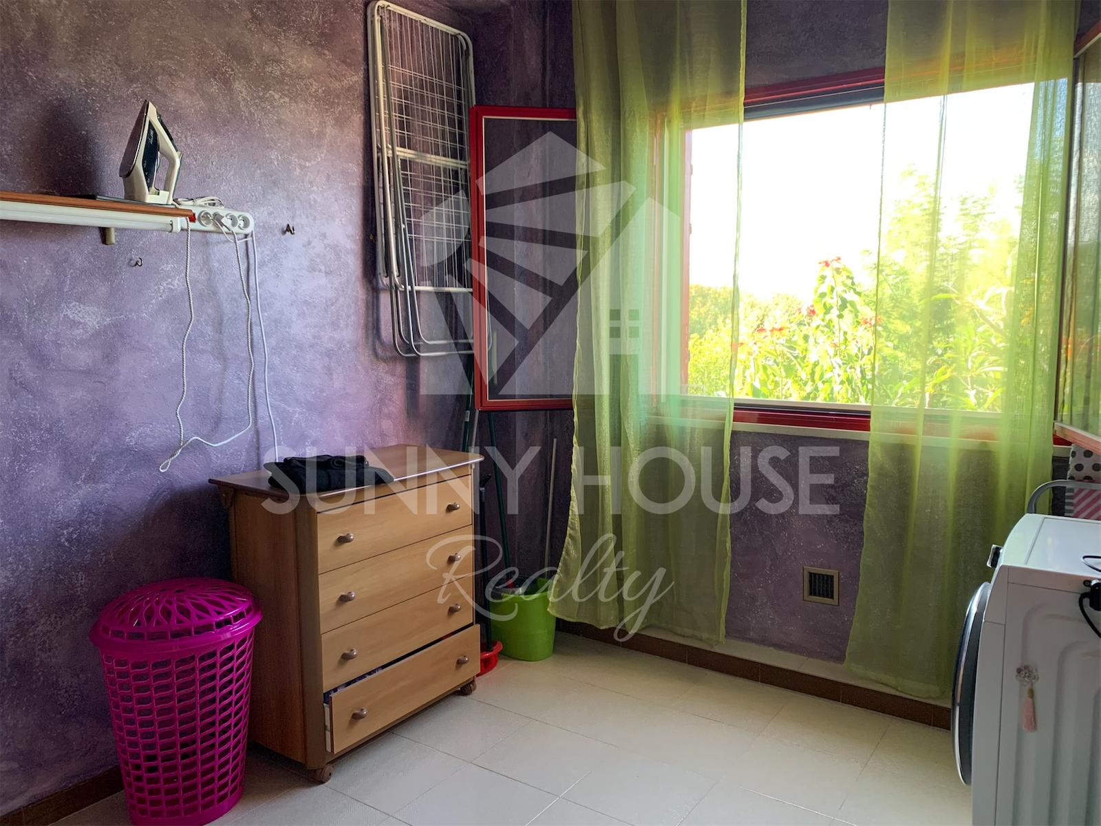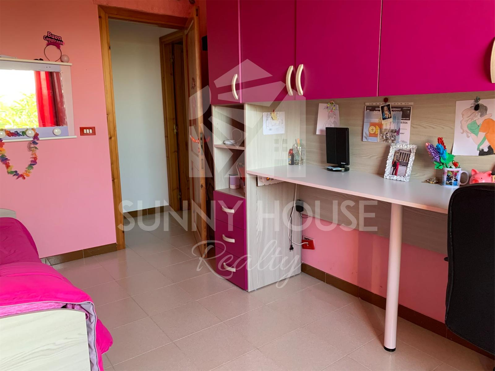 La villa è incorniciata da uno spazio esterno molto curato: nella parte frontale si trova un giardino ricco di alberi di arancio, che profumano l’area e creano un’atmosfera mediterranea. Sul retro della casa si estende un ampio prato verde, ideale per momenti di relax all’aria aperta, per l’installazione di una piscina o per realizzare aree ricreative.