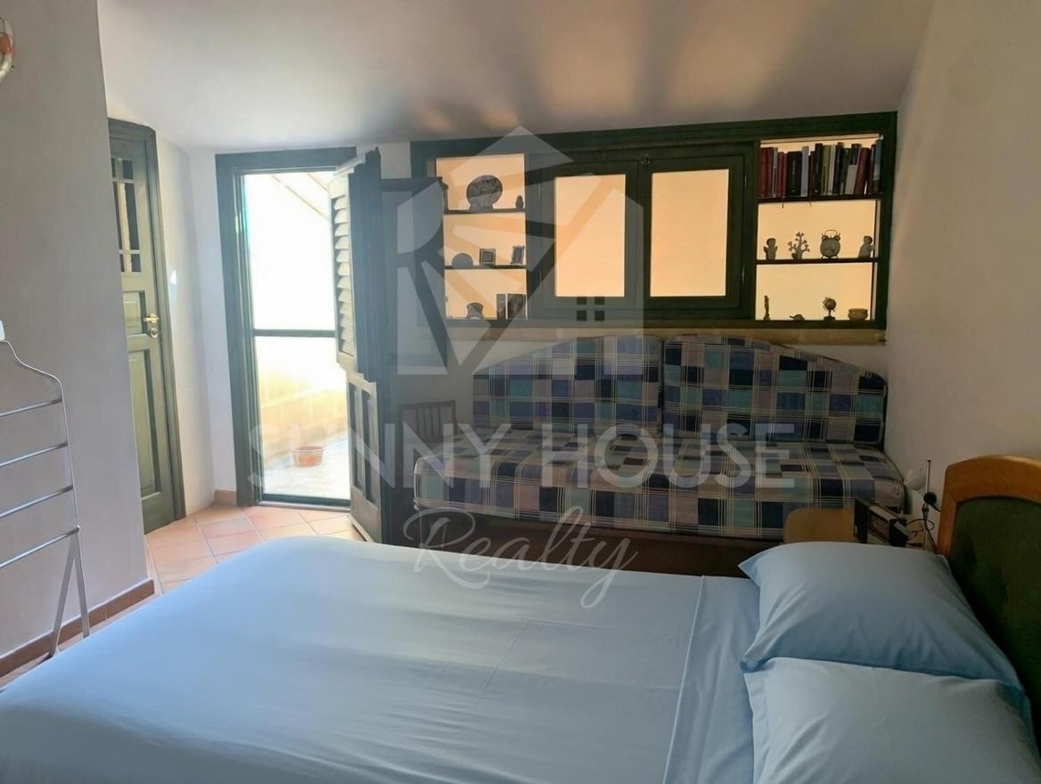 Il primo piano ospita una camera matrimoniale con climatizzatore e termosifone, un bagno e un piccolo terrazzino con vista mare. Da qui si può ammirare anche il caratteristico anfiteatro del residence attraverso una particolare finestra rotonda a oblò, che conferisce all’ambiente un tocco di unicità e charme.